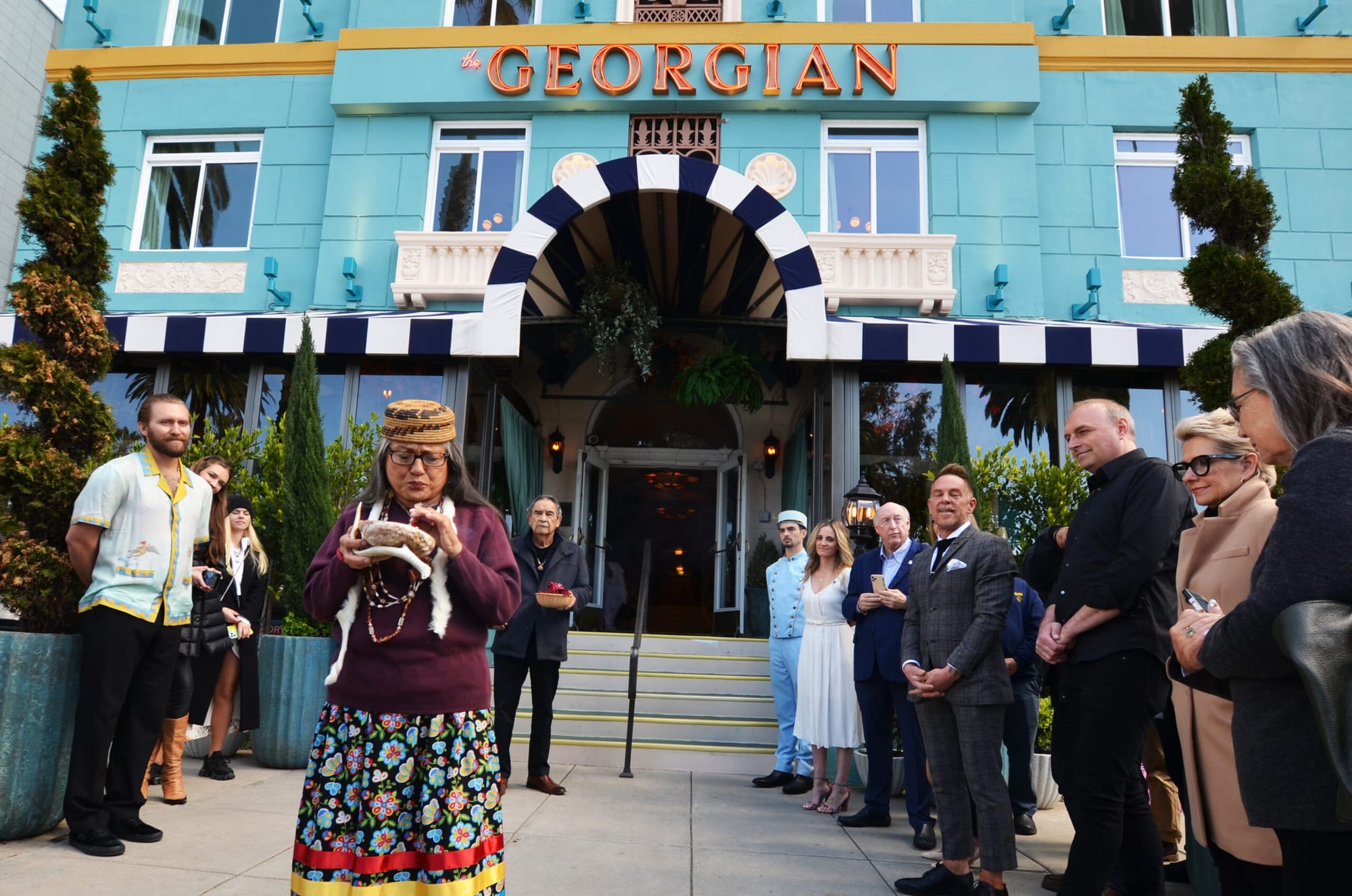 Perez, while battling against the background noise of day-to-day Ocean Ave traffic, provided a condensed-but-captivating summary on the history of Santa Monica and how it came to be before Carmelo performed a traditional sage blessing that cleansed the air, the land and the water and bestowed good health and good fortune on the historic hotel, which also celebrates its 90th anniversary this year.