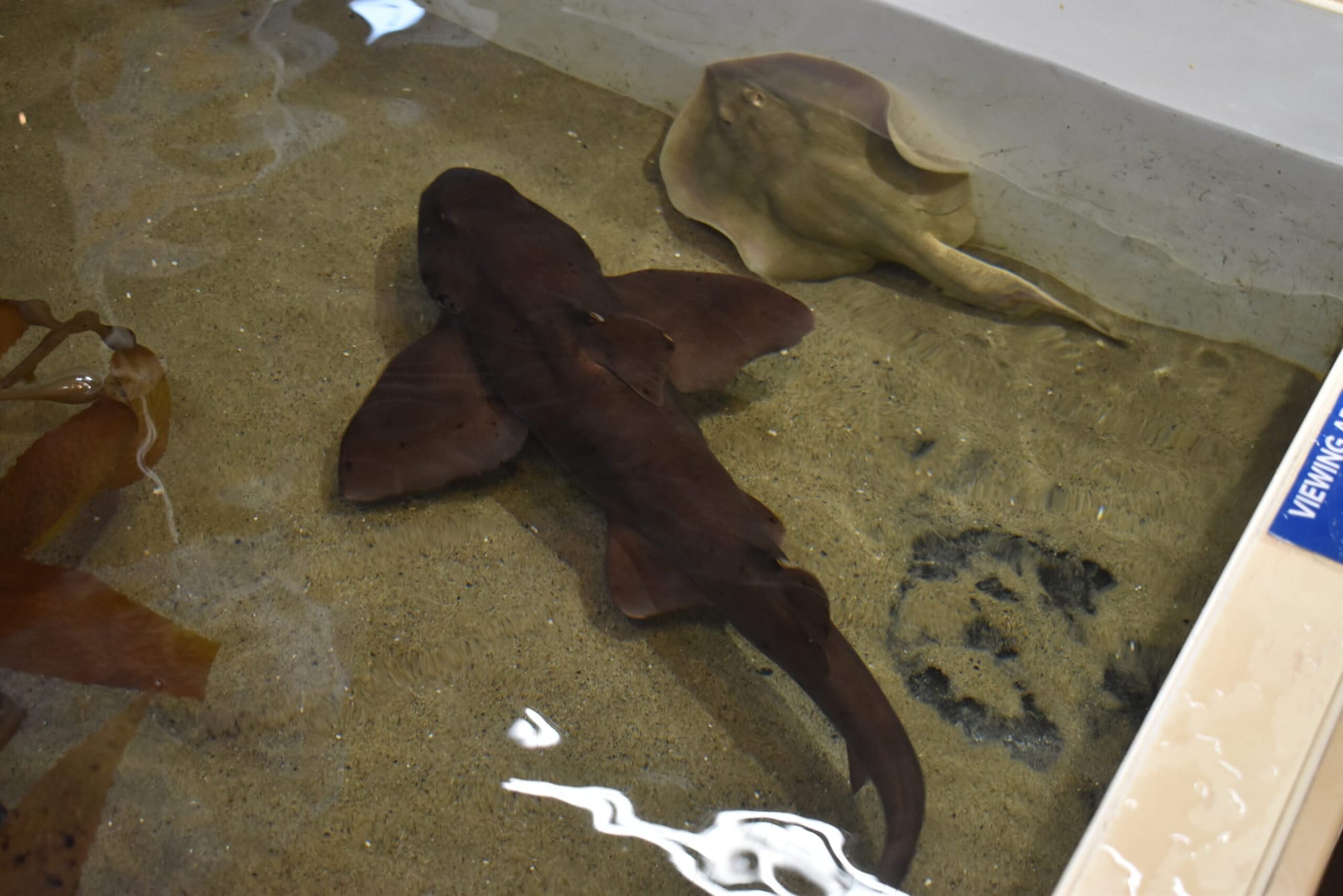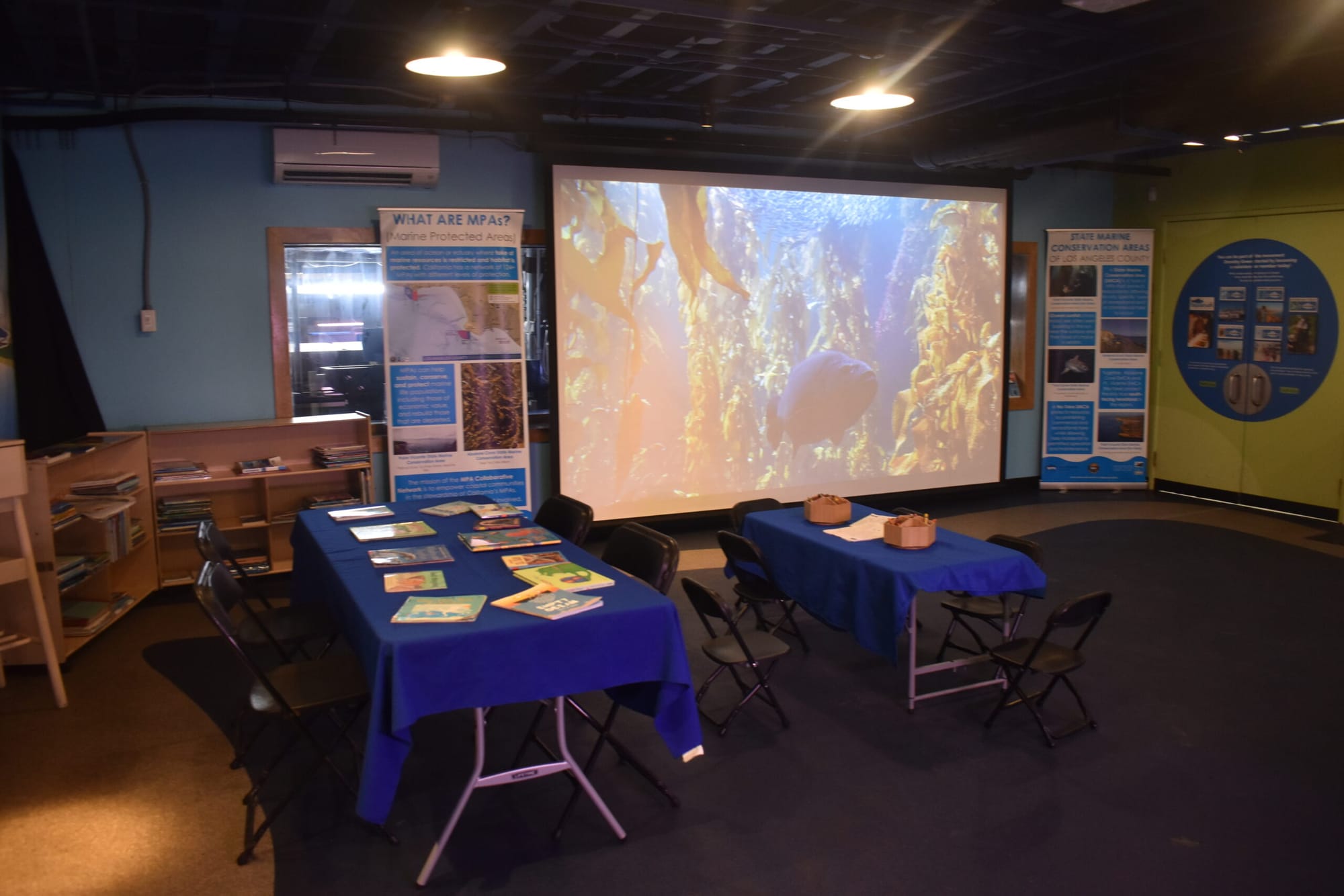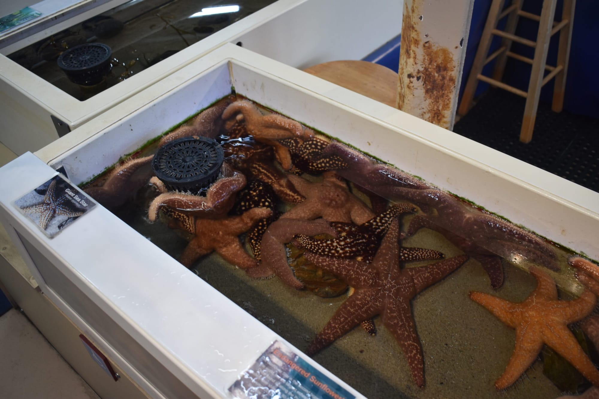A truncated version of a camp visit is also done via school class field trips to the aquarium, a two-hour session which begins with gallery exploration before splitting the class group into two sections. One group takes to the beach for exploration, while the other visits the "Green Room" class setting to learn about a topic chosen by a teacher, ranging from food webs and habitats to coastal cleanup education and human impacts on ecosystems. After around 40 minutes, the groups switch stations, providing a comprehensive experience under the "Five E" model of learning (engage, explore, explain, elaborate, evaluate).