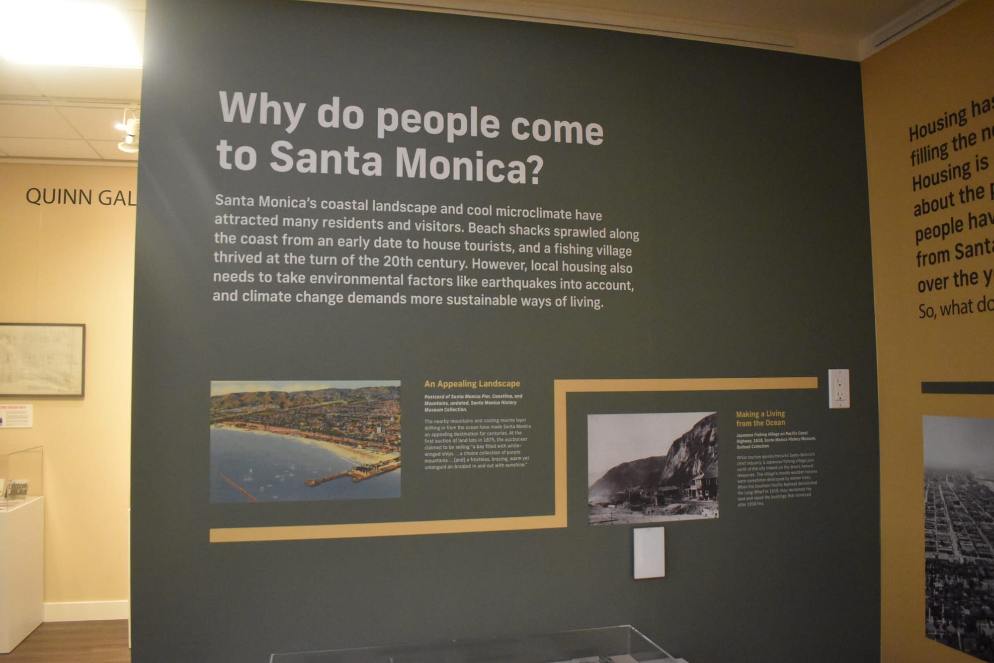 She added that the exhibition is formed by those questions and more, since they “don’t really have all the answers,” but wanted locals to begin thinking about the issue more deeply. The gallery begins with a panel on what it means to live in Santa Monica, ranging from basic statistics and why the area is appealing, to the environmental challenges related to being in a coastal city.