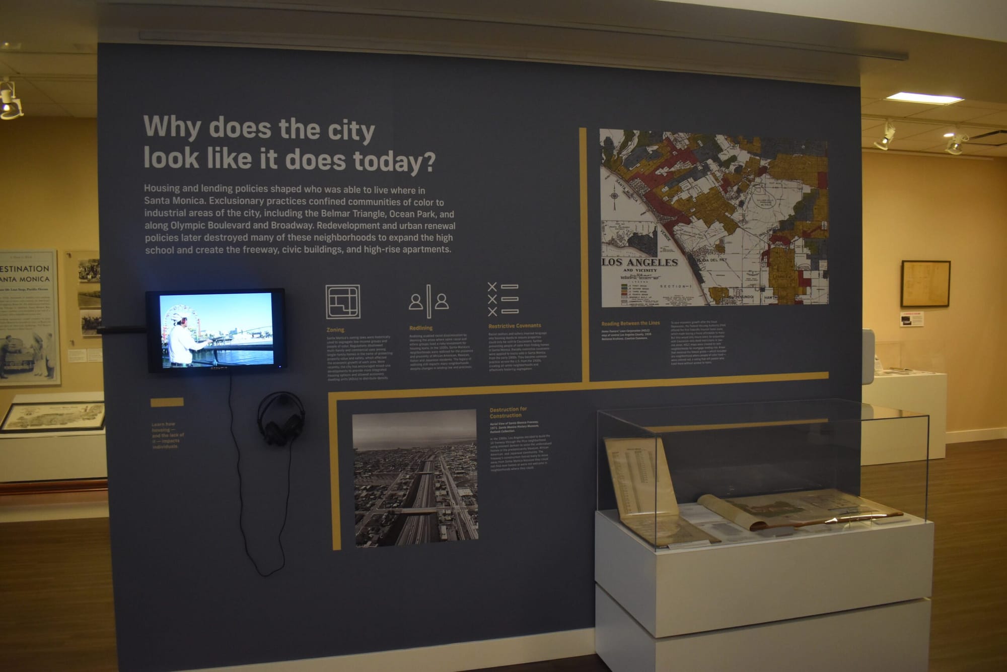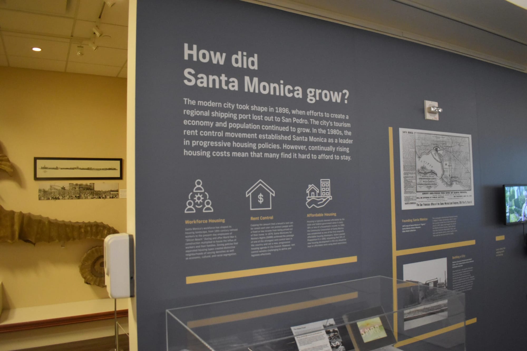 Crafting the gallery space full of information, memorabilia and interactive features was Museum Curator and Collections Manager Anne Wallentine, who said conversations about spotlighting housing began a year ago since the issue is “one of the most important” facing Santa Monica and the broader Los Angeles area. Through different sections of the gallery, the city’s history is told from the Tongva people to its modern housing climate.