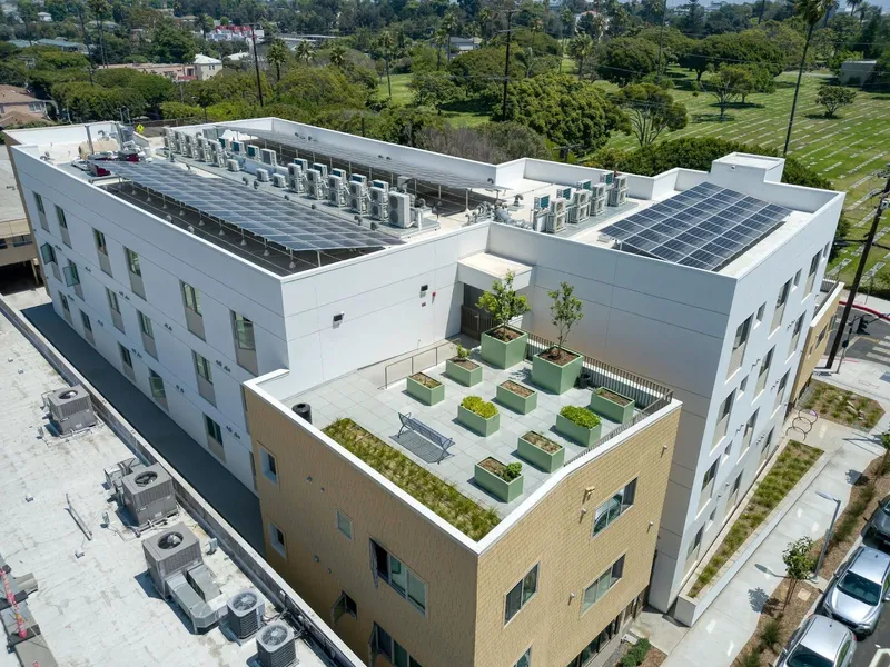 Crafting the development in the Pico neighborhood was developer EAH Housing, alongside architect KFA Architecture. The People Concern works as the service partner for the site, providing tenants with life skills classes, budgeting classes and community-building social activities.