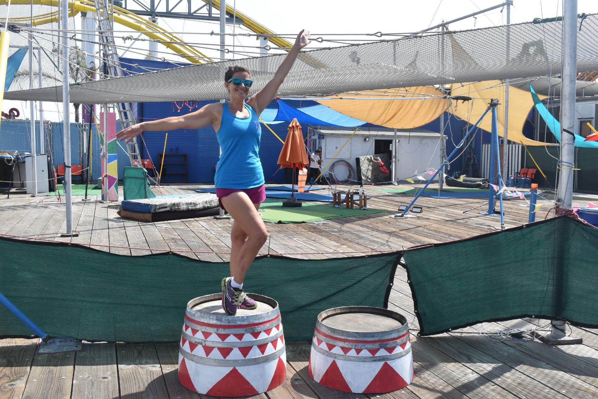 To enhance the circus theme, Stevens received a wine barrel from Calamigos Ranch in Malibu, painting the barrel in classic circus style for photo opportunities. She hopes that the more colorful school, along with the first-timer classes, will make her endeavor more approachable to tourists, especially with the first "Locals’ Night" of the season hitting the Pier on Thursday.