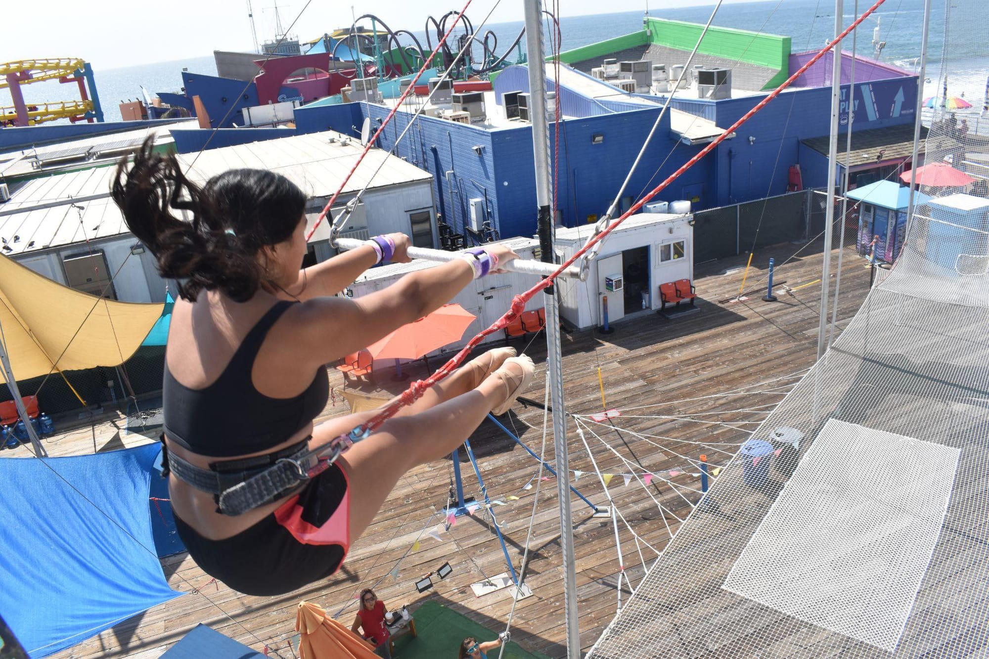 After another online fundraising push, Santa Monica Trapeze School was climbing up the platform to its September opening. The school is located between two Pier landmarks, the Playland Arcade and Pacific Park, and is looking to compete for visitors’ attention by offering a family-friendly space and more accessibility for first-timers. At a discounted price point, the school is now offering "first-time flier" sessions lasting 30 minutes, so tourists can fit in a truncated class during a busy travel day. For visitors that enjoy the session, the school offers more advanced two-hour classes as their next step.