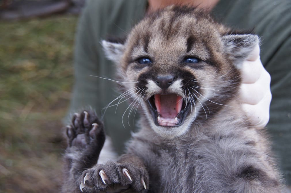 Biologists from Santa Monica Mountains National Recreation Area are tracking seven mountain lions for their decade-long study of animal survival in urban areas. The agency has now studied 24 mountain lions, including these newborn kittens, and they are the third litter of kittens this study has documented.