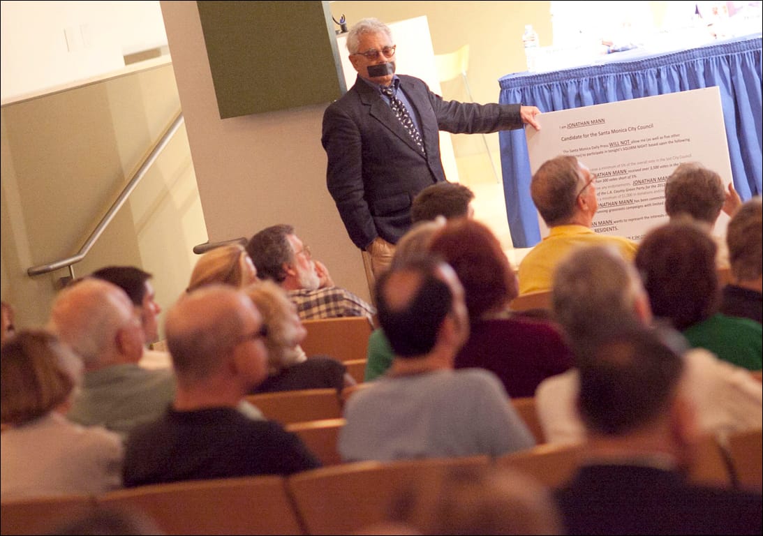 Among the most vociferous of the Santa Monica 6 was Jon Mann, who's running for City Council for a record 12th time. Letters of protest were issued but the Daily Press held firm and Squirm Night came off without a hitch. Almost.