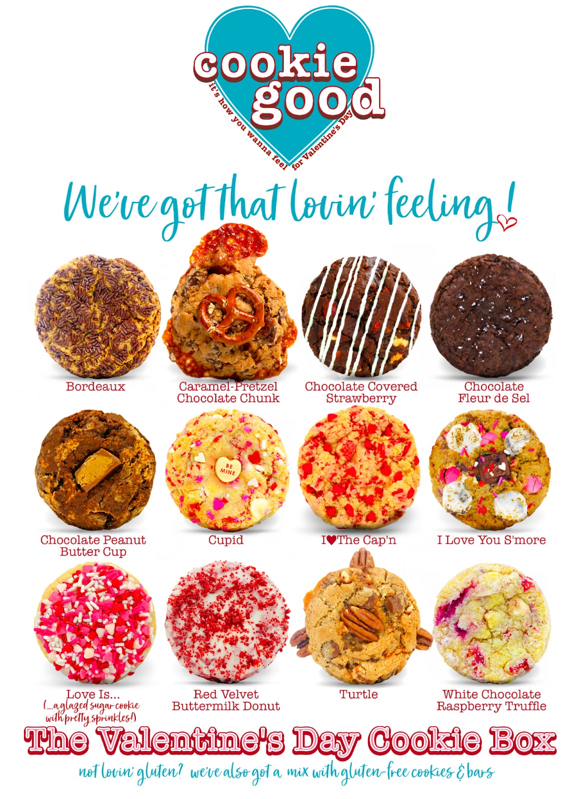 Cookie Good "Valentine’s Day Cookie Box": The heart-shaped candy box is as much a part of Valentine’s Day as Cupid and red roses. They’ve taken inspiration from some of their favorite "nuts & chews" to create a Valentine’s Day Cookie Box. 2448 Wilshire Blvd. More info here.