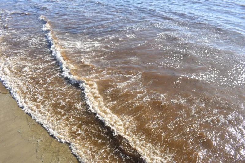 A sizable algae bloom was seen for miles down the Pacific coastline on Tuesday, turning the typical blue waters into a reddish-brown sensation that attracted considerable tourist attention. The "red tide" is also known as a phytoplankton bloom, occurring when a species of the organism known as dinoflagellates reproduce rapidly in warmer and calmer waters.