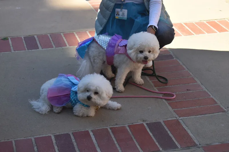UCLA’s PAC initiative is designed to provide companionship to both children patients and adults in the building, with dogs coming for Halloween in underwater-themed outfits. PAC teams also make monthly visits to Santa Monica on the last Tuesday of each month, bringing along both dogs and a miniature therapy horse.