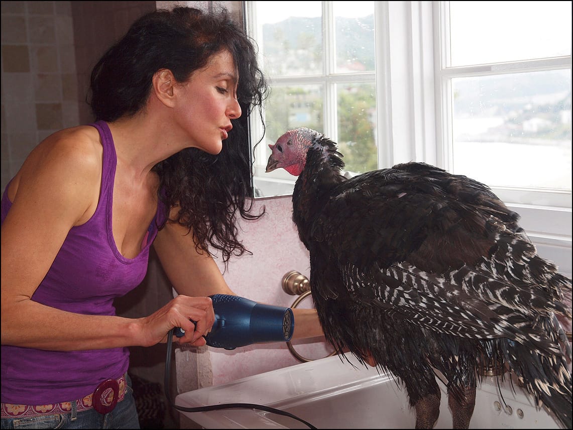 Dawn fell in love with turkeys after visiting one named Olivia at an animal sanctuary. Since, she has either sponsored or rescued turkeys, which then live at her Palisades home.