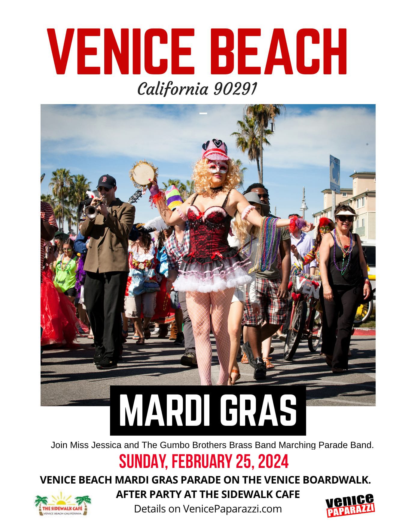 Venice Beach Mardi Gras Parade: Marking its 25th year, participants are urged to don their most festive costumes and join the lively, irreverent celebration. Sunday, Feb. 25, 11a.m. - 6p.m. https://www.venicepaparazzi.com/2024/01/22/mardi-gras-parade/