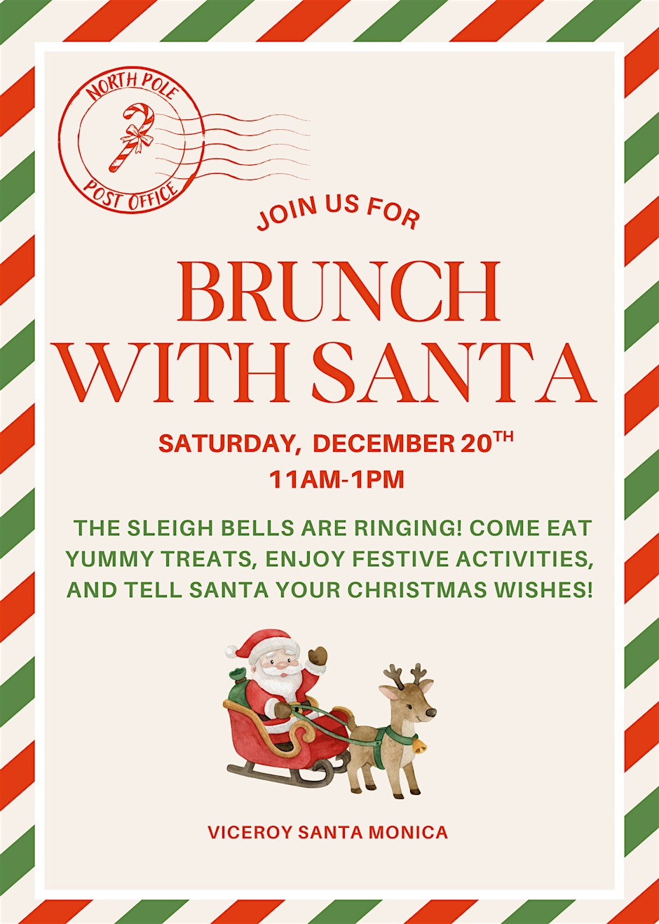 Brunch with Santa at the Viceroy: Celebrate the magic of the season at Viceroy Santa Monica’s Brunch with Santa, a festive family experience filled with holiday treats, creative activities, and joyful moments. Join us for a coastal-holiday gathering designed for kids and adults alike—complete with a special visit from Santa himself. $20/person includes all activities, breakfast bites, and Santa experience. À la carte menu items are available for additional purchase. Friday, Dec. 20, 11a.m. – 1p.m., 1819 Ocean Ave. eventbrite.com/e/brunch-with-santa-at-viceroy-santa-monica-tickets-1976228864733
