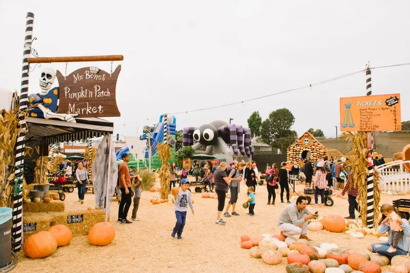 Further Afield:Mr. Bones Pumpkin Patch: Culver City's favorite pumpkin village offers plenty of family fun, including photo ops in front of giant pumpkin installations, a straw maze, a super slide, petting zoo, giant rocking horses, and pumpkin decorating sessions. Open daily through Oct. 31. mrbonespumpkinpatch.com