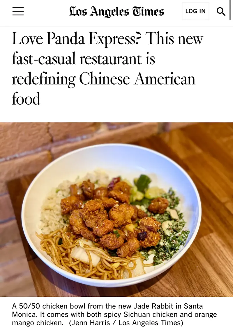 LA Times Profiles New Jade Rabbit by Former Cassia Chef: "Love Panda Express? This new fast-casual restaurant is redefining Chinese American food." https://www.latimes.com/food/story/2025-10-06/jade-rabbit-panda-express-chinese-american-restaurant-santa-monica