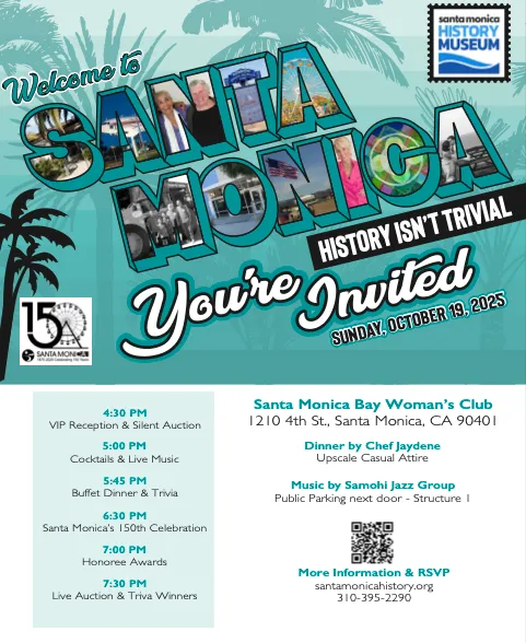 Santa Monica History Museum History is Not Trivial Gala: Come together not only to mark Santa Monica’s 150th birthday, but also to honor our History Museum that has preserved its stories, safeguarded its heritage, and connected generations through history. $150. Sunday, Oct. 19, 4:30p.m., SaMo Bay Woman’s Club, 1210 4th St. https://santamonicahistory.ejoinme.org/2025Gala