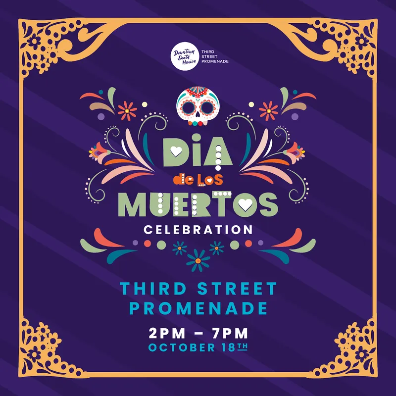 Annual 3rd St. Promenade Día de los Muertos Celebration: Expect public art by Los Angeles-based artist Ricardo Soltero 💀🌼, live performances 🎤💃🏻, kid and pet-friendly activities, a Latinx pop-up market hosted 🛍️, competition for the best dressed catrina / catrin, and community altars, and more. Saturday, Oct. 18, 2 - 7p.m. https://www.eventbrite.com/e/2025-dia-de-los-muertos-celebration-in-downtown-santa-monica-tickets-1514147719589