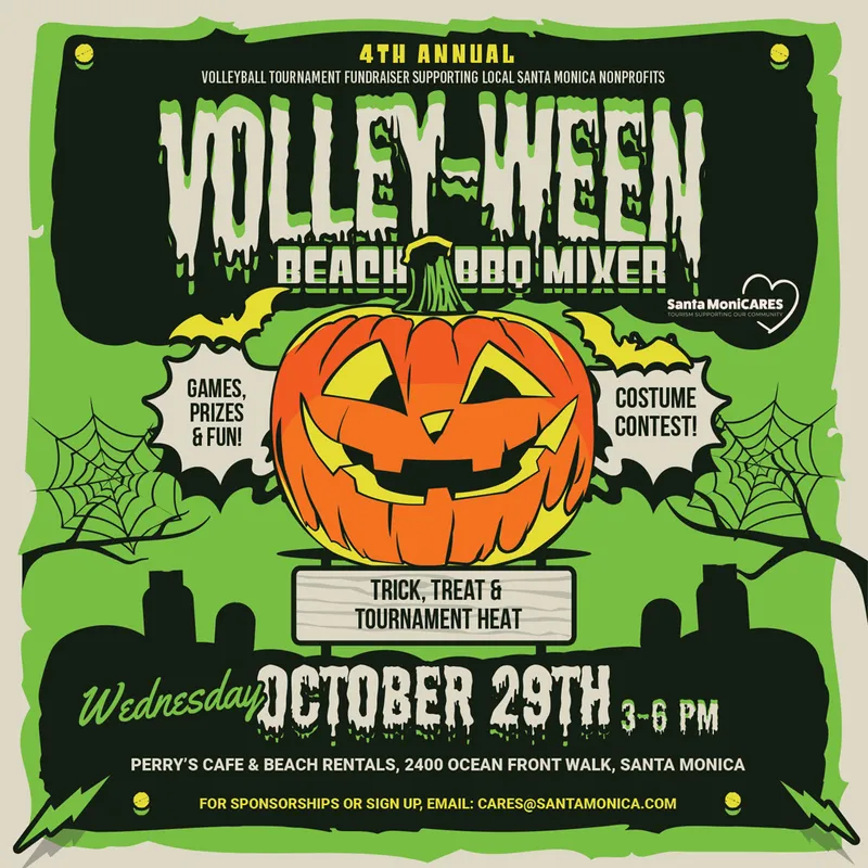 4th Annual Volley-Ween Fundraiser: Santa MoniCARES is gearing up for its 4th Annual Volley-Ween, a beach mixer and volleyball tournament fundraiser, set for. The event, with a $35 registration fee per player, aims to raise funds for local nonprofits providing essential human services during the winter season. Wednesday, Oct. 29 from 3 - 6p.m., Perry’s, 2400 Ocean Front Walk SantaMoniCARES.org