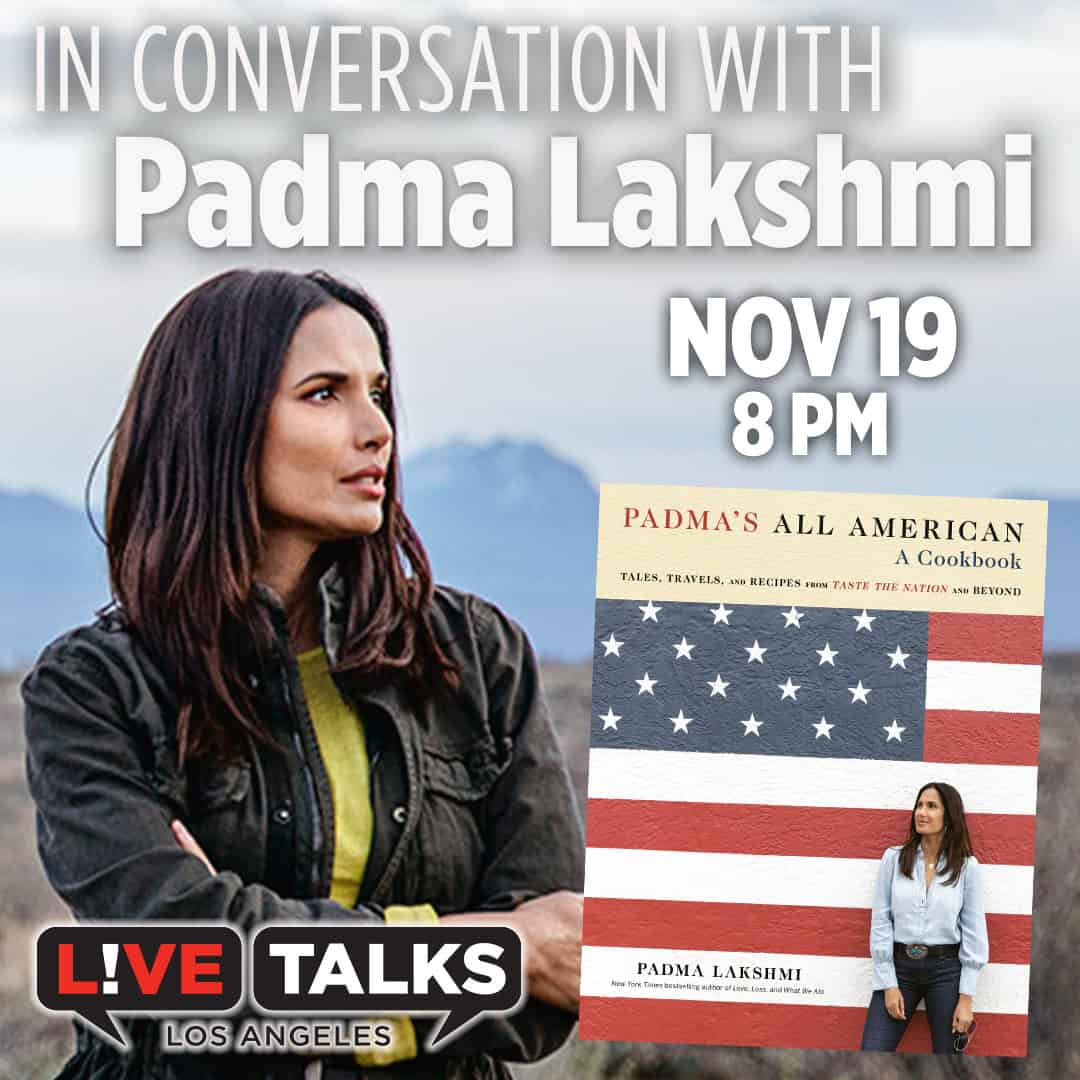 Live Talks: An Evening with Padma Lakshmi: discussing her cookbook, Padma’s All American: Tales, Travels, and Recipes from Taste the Nation and Beyond: A Cookbook Wednesday, Nov. 19, 8p.m., New Roads School 3131 Olympic Blvd. https://livetalksla.org/events/padma-lakshmi/
