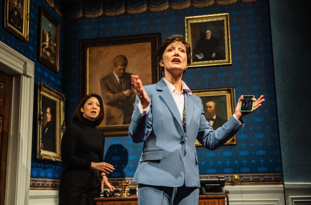 Fillinger stopped in to check on early production at the Geffen, complementing the cast and crew on its professionalism. The play stars Broadway veterans like Ito Aghayere as Chris, who also recently played the role of Guinan on Star Trek: Picard. Other featured roles are Alexandra Billings as Margaret, Lauren Blumenfeld as Stephanie and Shannon Cochran as Harriet. The playwright called POTUS a "deceptively challenging" and "technically hard" production, something Chambers and the Geffen team took on in stride.