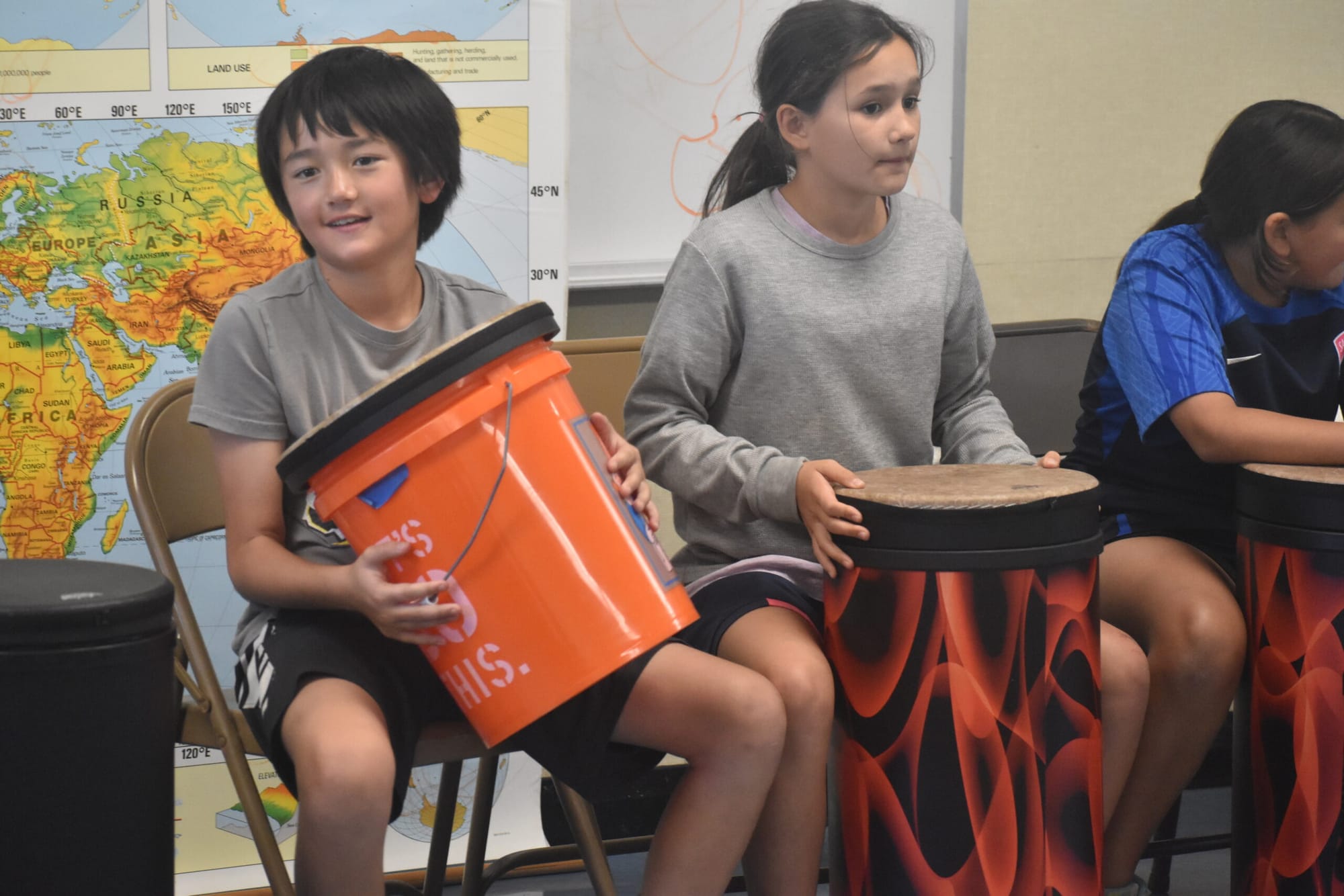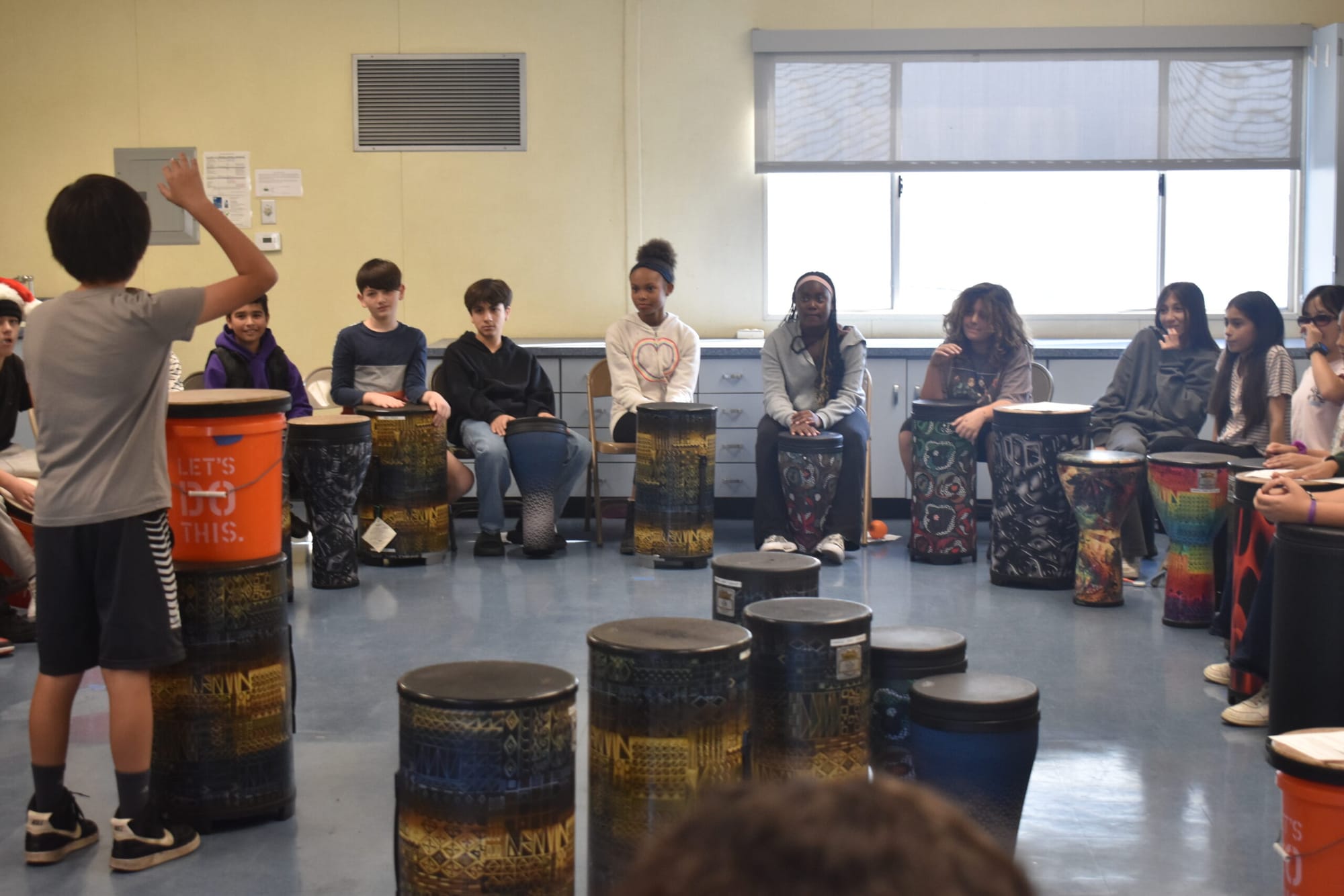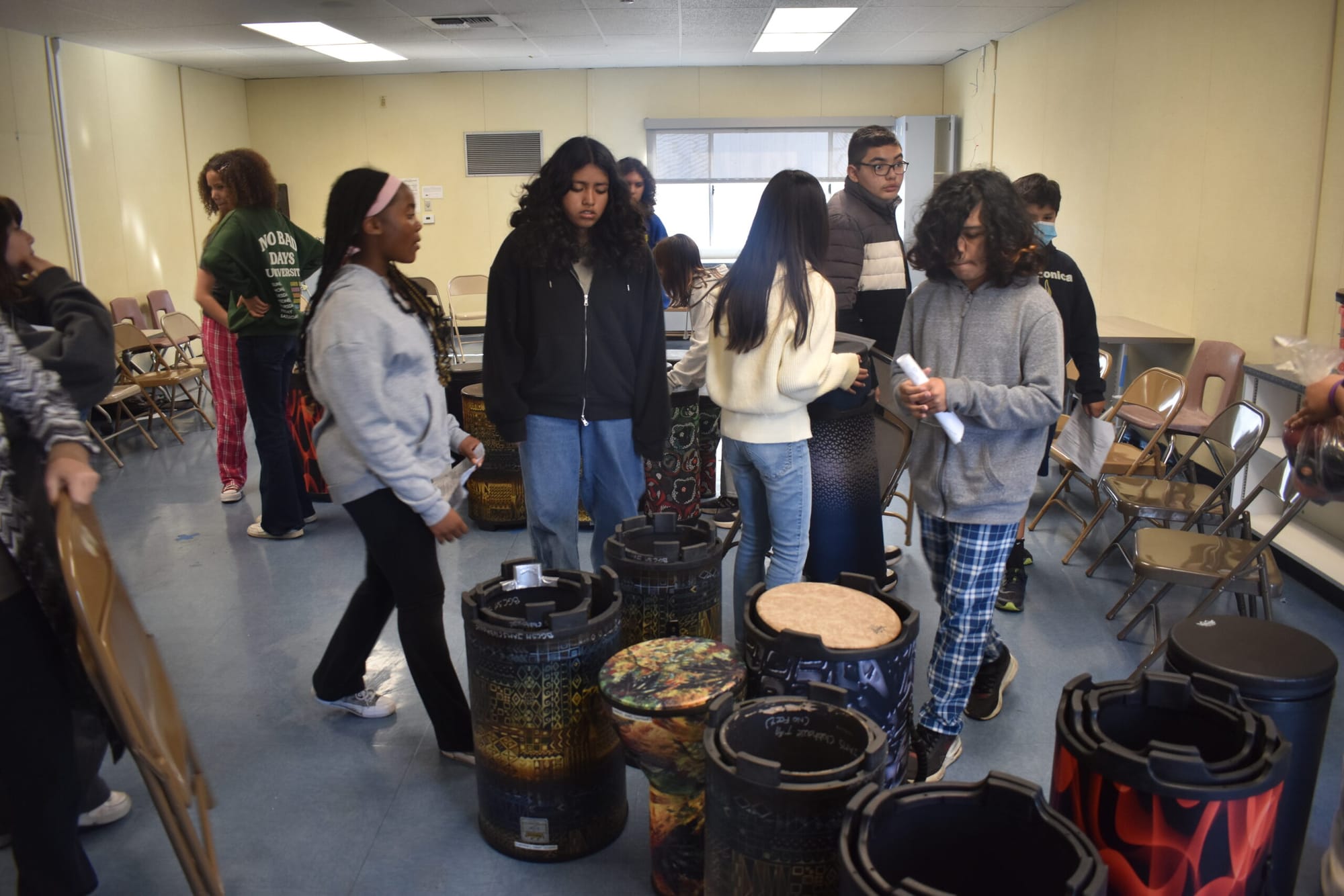 Student mentors from John Adams Middle School built a drum circle for fifth-graders at Will Rogers Learning Community