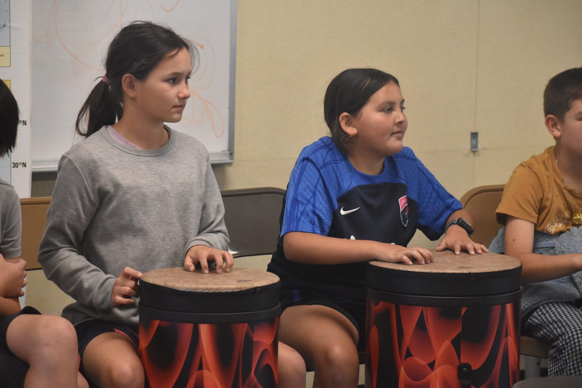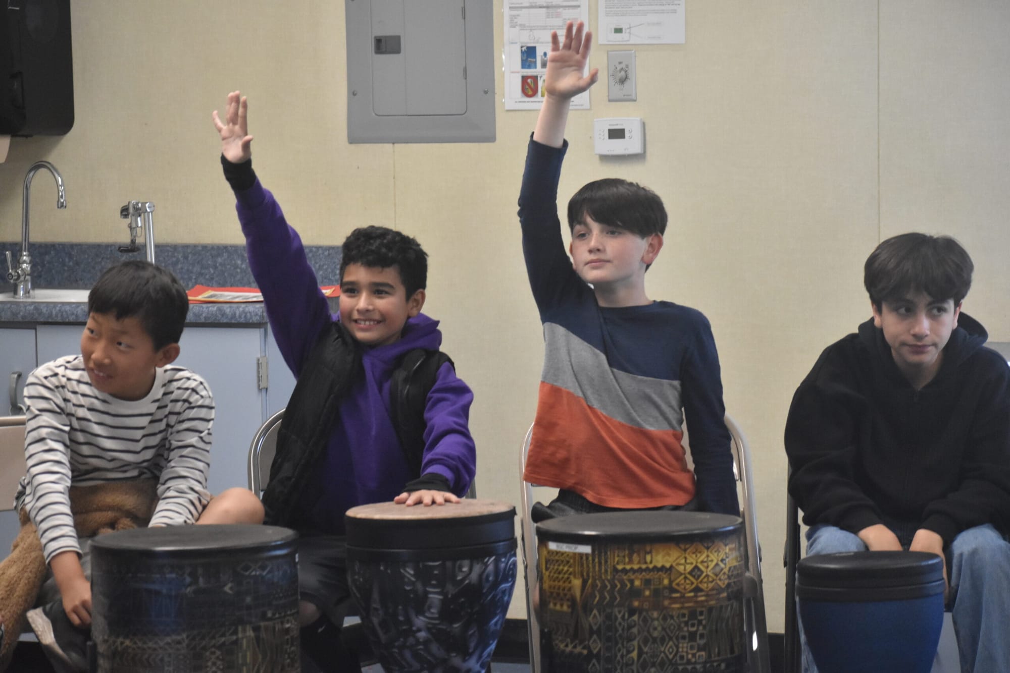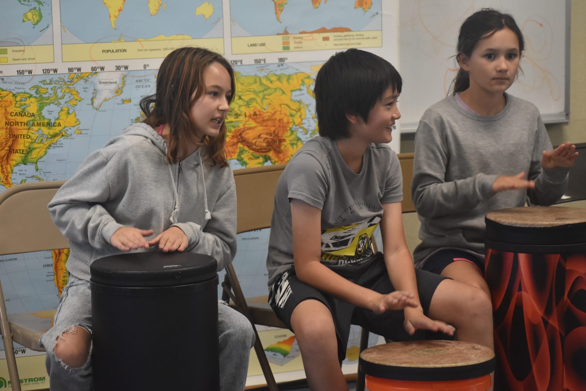 Drumming activities included games like Simon Says, Name that Tune and Telephone Rhythm. Will Rogers students also learned “weather check-in signals,” different beats that represent weather patterns like sunny, stormy and snowy. These beats also serve as metaphors for different feelings, and the fifth-graders used the signals to emote how they felt about preparation for middle school.