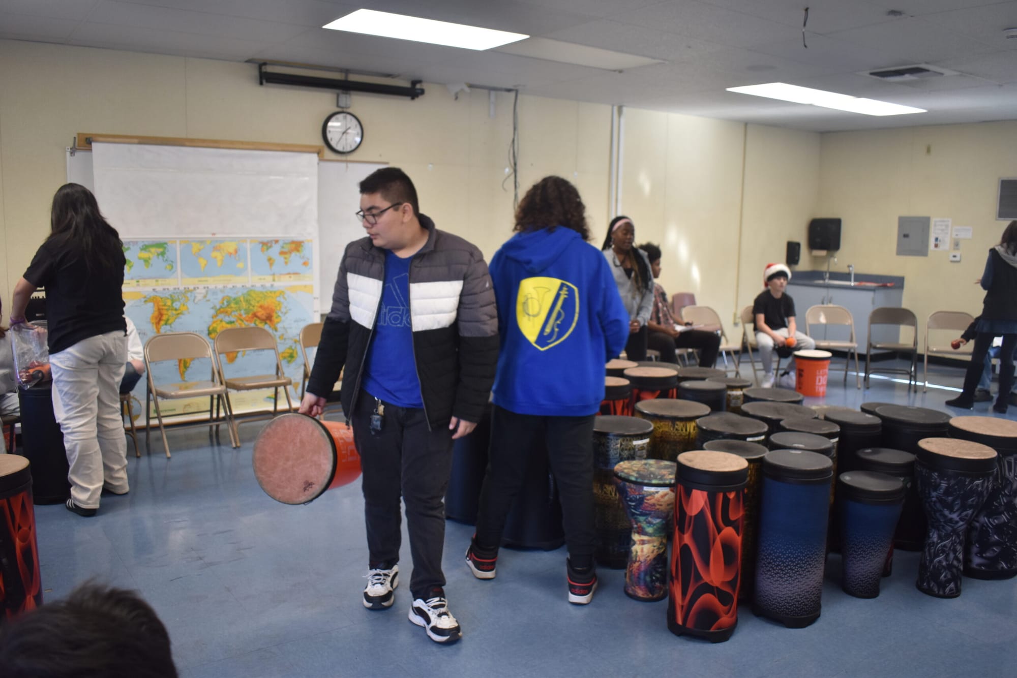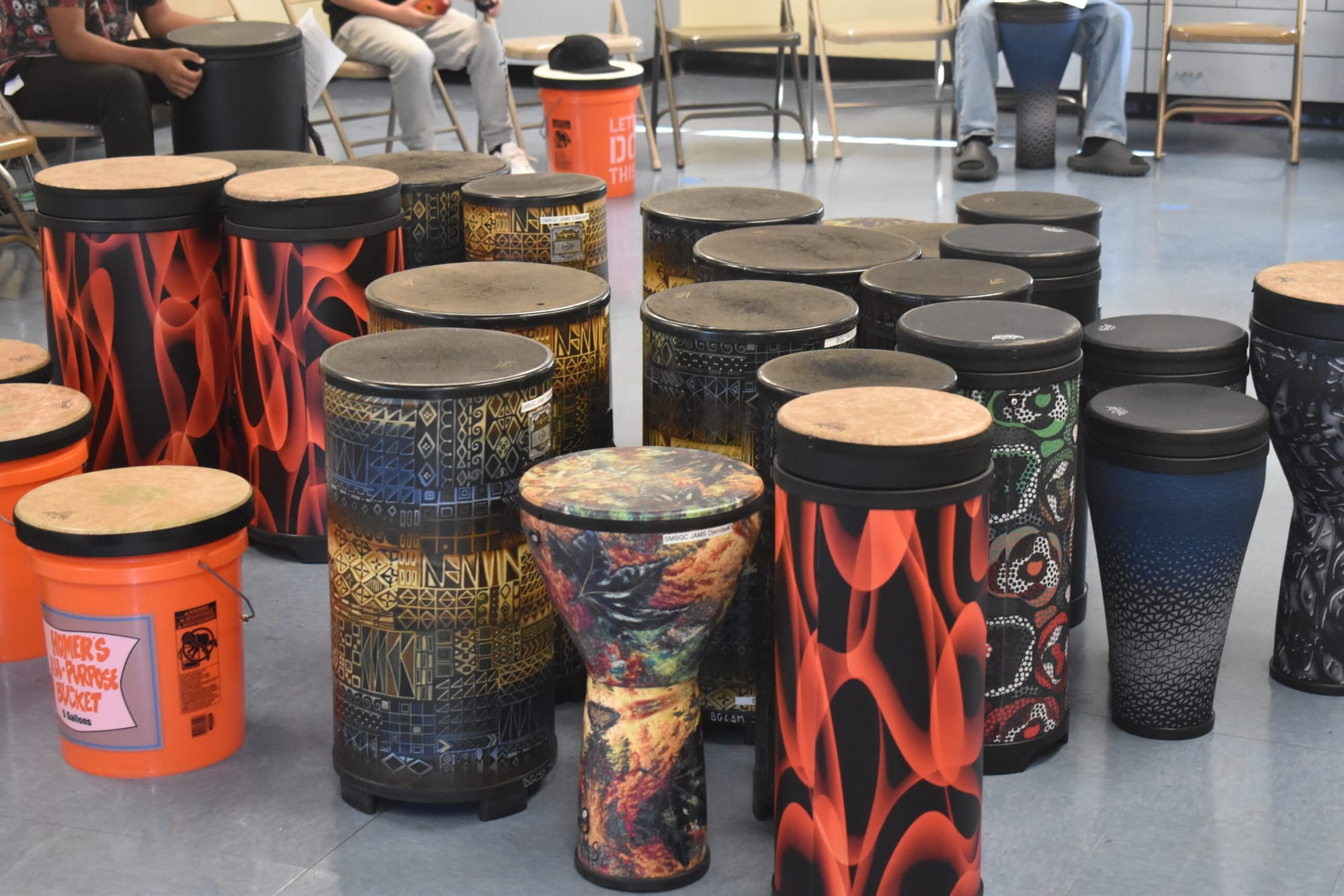 The bang of the Djembe-style drum acted as a primary communication tool between two sets of schools, binding two separate sects of students into one musical machine this past week.