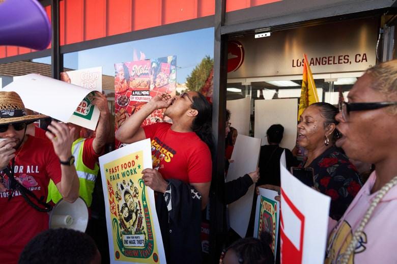 Workers strike against efforts to repeal AB 257, a law creating a council to track workplace conditions in fast-food restaurants