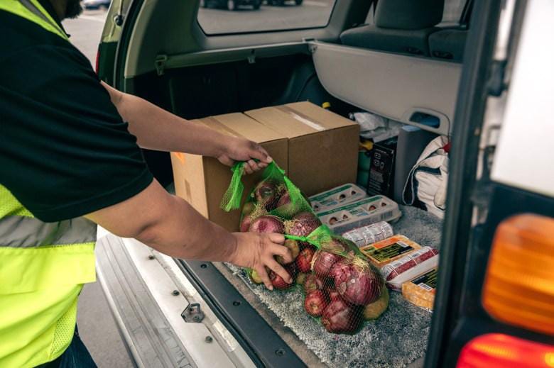 Food Bank of Contra Costa and Solano volunteers and staff load groceries into cars in Vallejo on June 7, 2023. Photo by Shelby Knowles for CalMatters