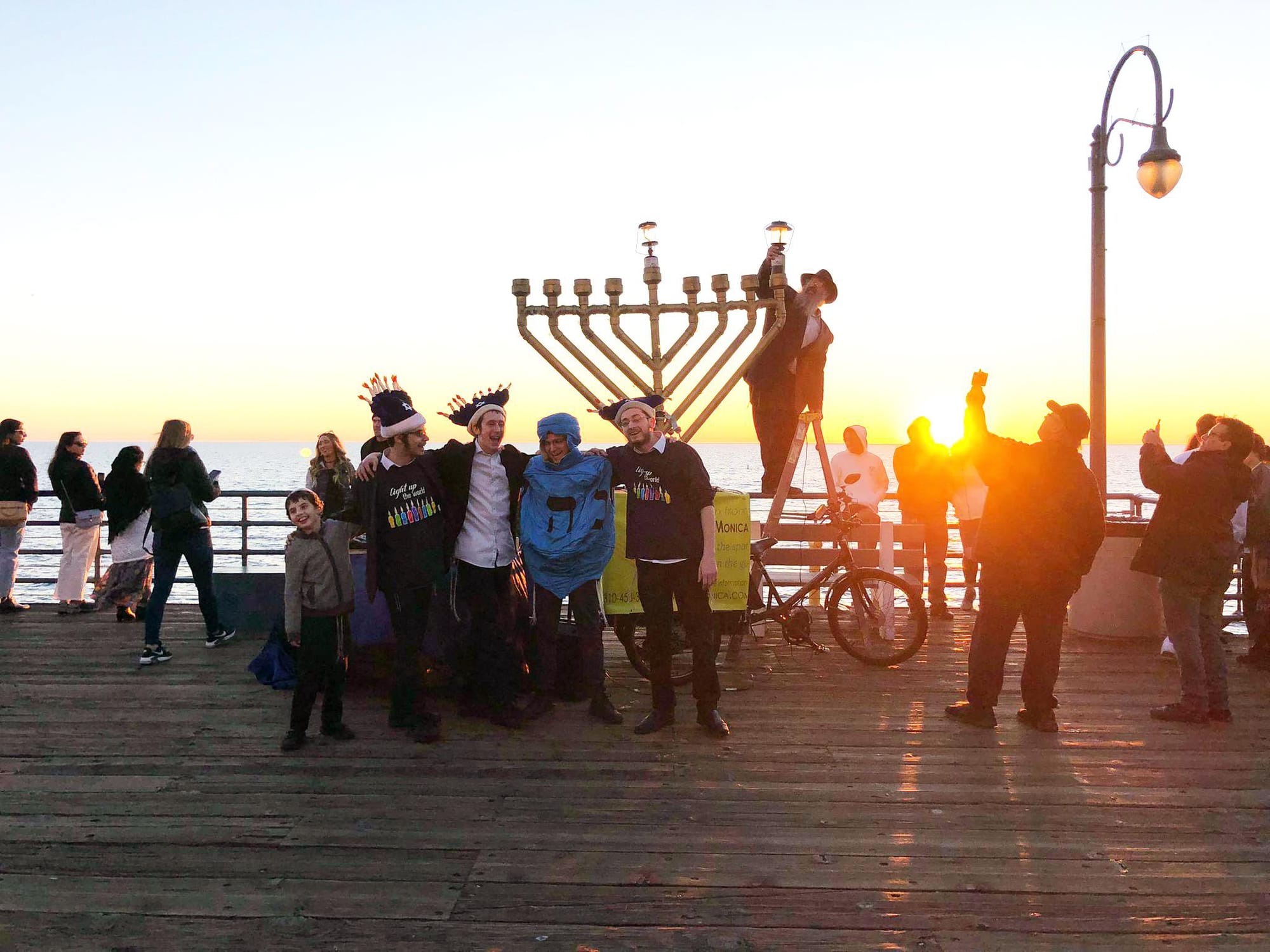 Hanukkah: Chabad in S. Monica (Chabad on 17th), kicked off the Hanukkah holiday celebration with a large group of community members, visitors, and tourists, on the west end of the Pier.