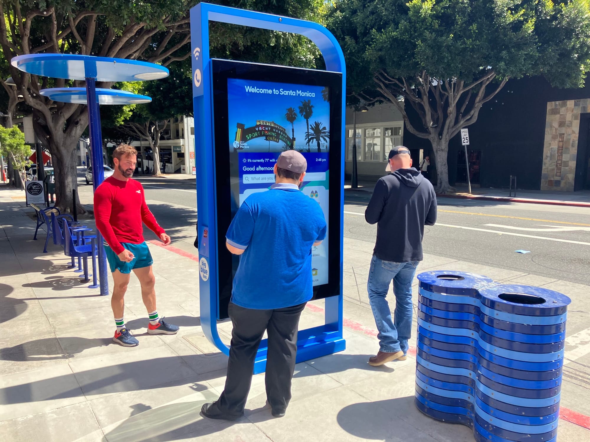 The first Wayfinder kiosk has been officially unveiled on the southeastern corner of the Wilshire Blvd and 4th Street intersection and as the foam padding was removed, it instantly attracted a small crowd of passers by.