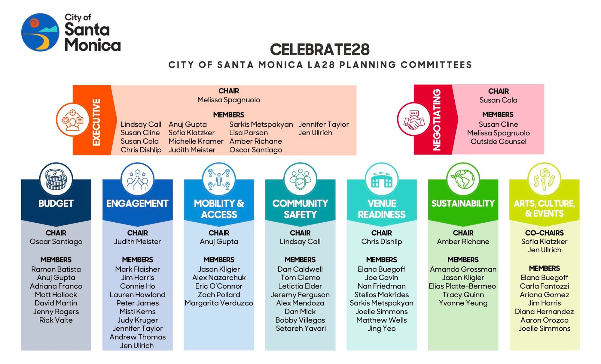 • Collaborate with fellow committee members to outline clear objectives and milestones that align with Santa Monica’s values and vision for the LA28 Olympics and a plan for achieving them
