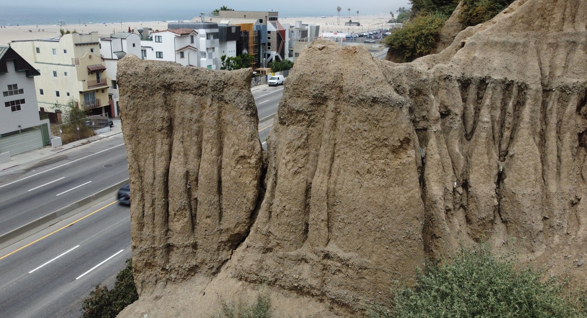 The precarious piece of the bluff below Palisades Park is no more after crews removed the hazard Wednesday morning. Asphalt lovers will appreciate the improved views of PCH.