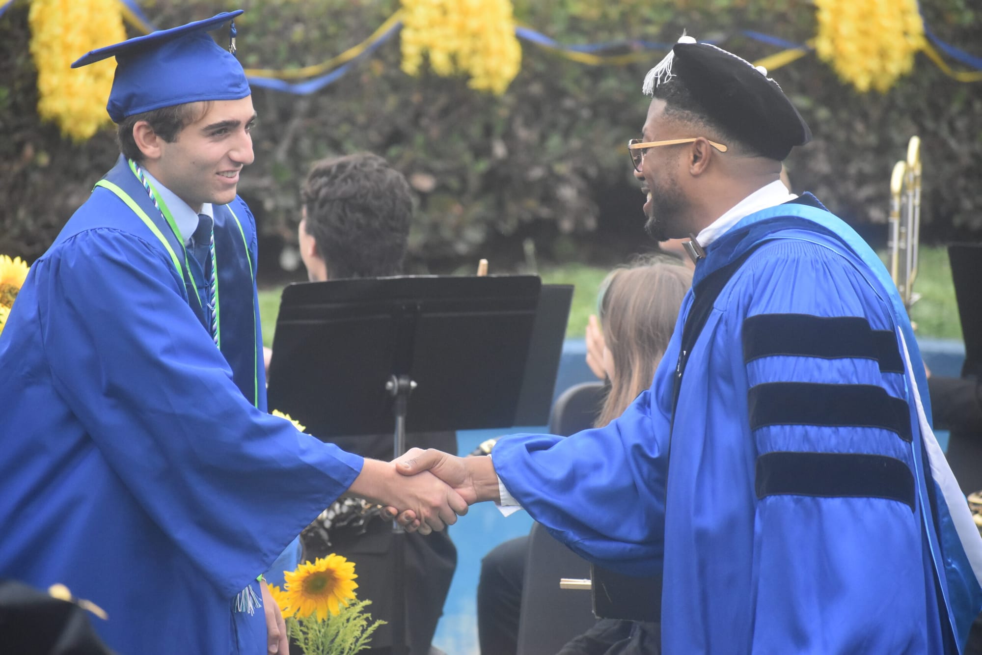 The entirety of the class then spilled out from the theatre into the track and field space to greet their families, celebrating years of hard work.