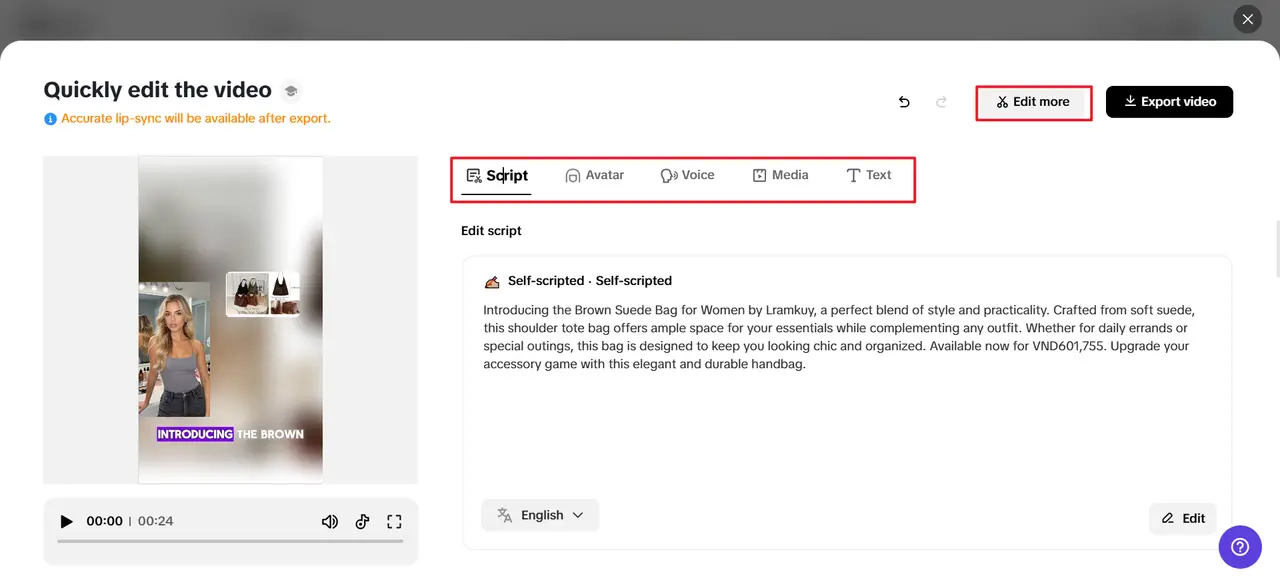 In the video editing section, you can edit your video by trimming your clips, adding text, transitions, visual effects, voice-overs, or even background music. This is where you can shape your generated draft into an effective marketing video that meets your objectives.
