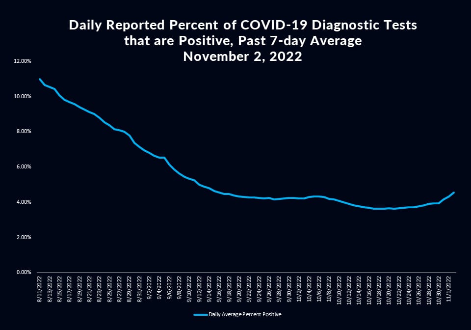 Ferrer offered the report during the weekly DPH press briefing on the pandemic. According to the director, the average recorded daily cases hit a low point of 870 cases reported on Oct. 16, but cases have been increasing steadily since Nov. 1, marking the first two-week rise since the summer omicron surge.