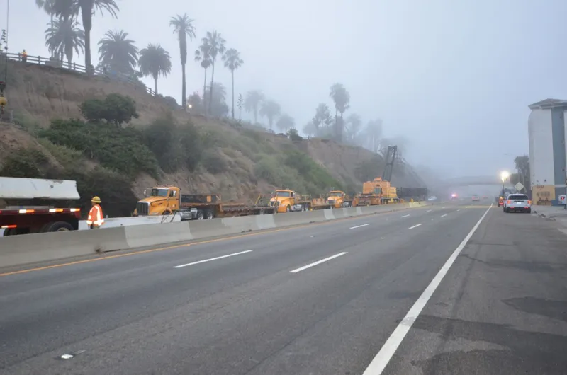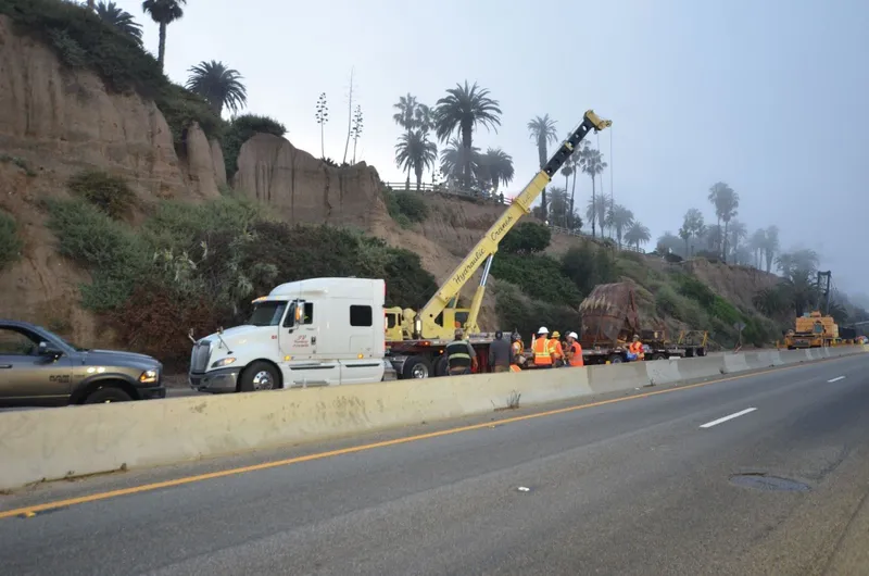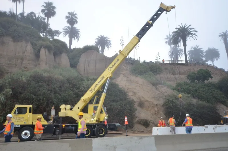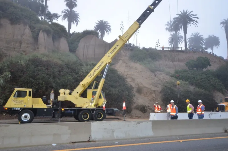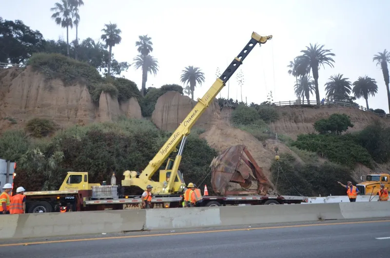According to Tom Clemo, Deputy Chief Santa Monica Fire Department, it only took a few full scoops with a giant hydraulic excavator "grab" to clear the breakaway bluff.