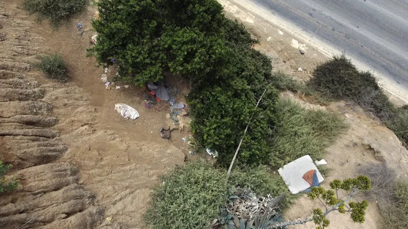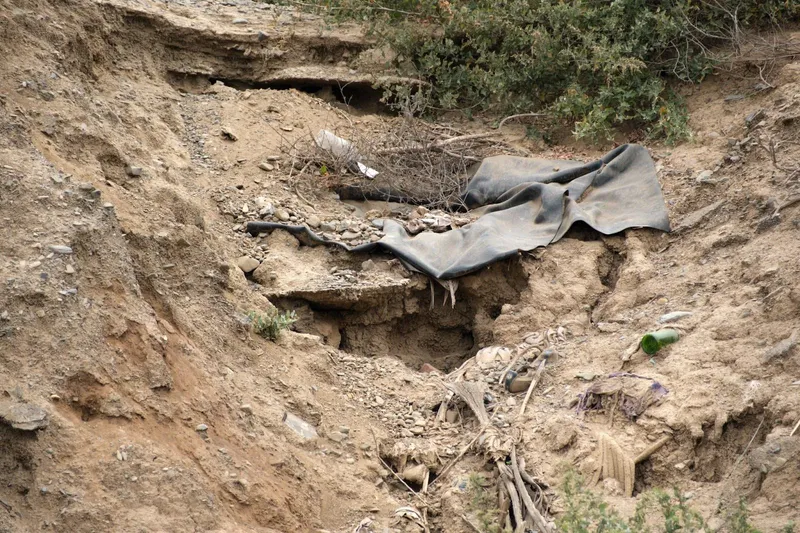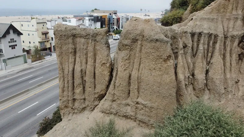 A column of soil has broken away from the bluffs near the Arizona footbridge along the Pacific Coast Highway and a section of the freeway will be closed through noon on Wednesday for emergency removal of the now dangerous section. While officials attribute the break to water damage caused by the unusually wet winter, the area is also home to a significant population of ground squirrels who have made burrows in the bluff and is a perennial site of homeless encampments, including several immediately adjacent to the now break-away column.
