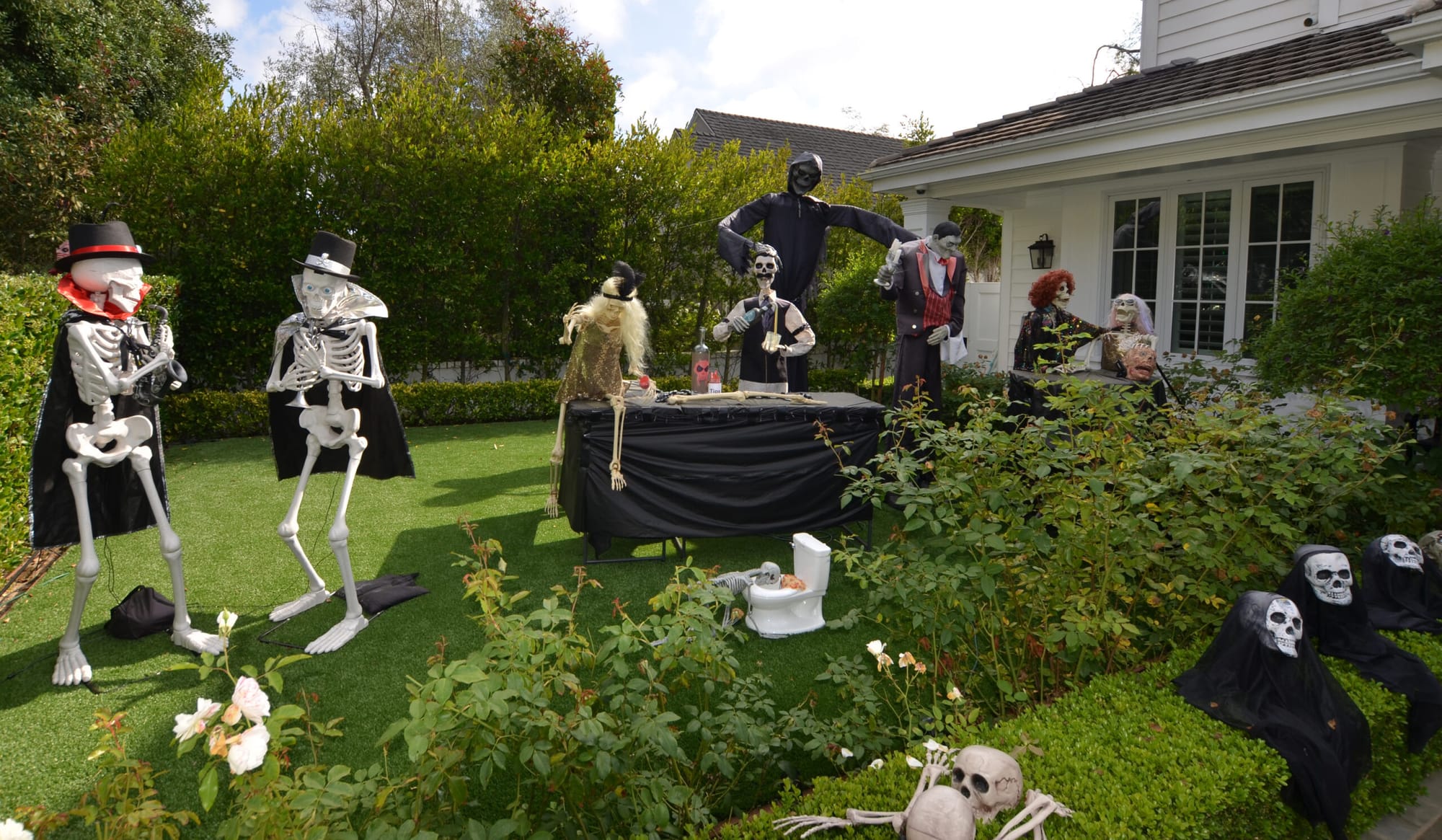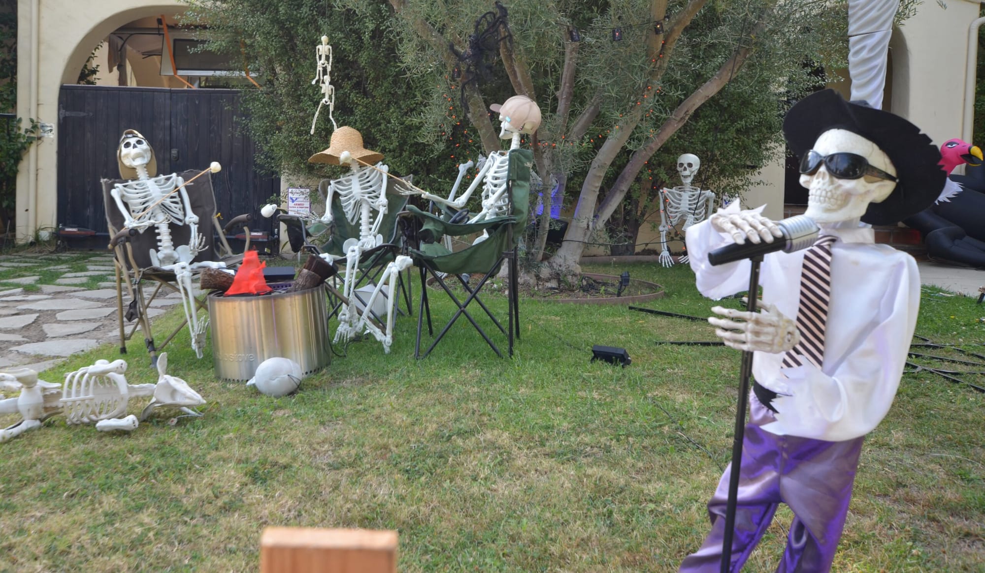 Cathy, also from 16th Street, also has an impressive bare boned-themed display, but her fleshless frames are toasting marshmallows in the front garden. "We bought over a thousand dollars worth of candy and people come from all over Santa Monica to this section of the city each and every Halloween. There are literally buses full of kids that arrive here throughout the evening."