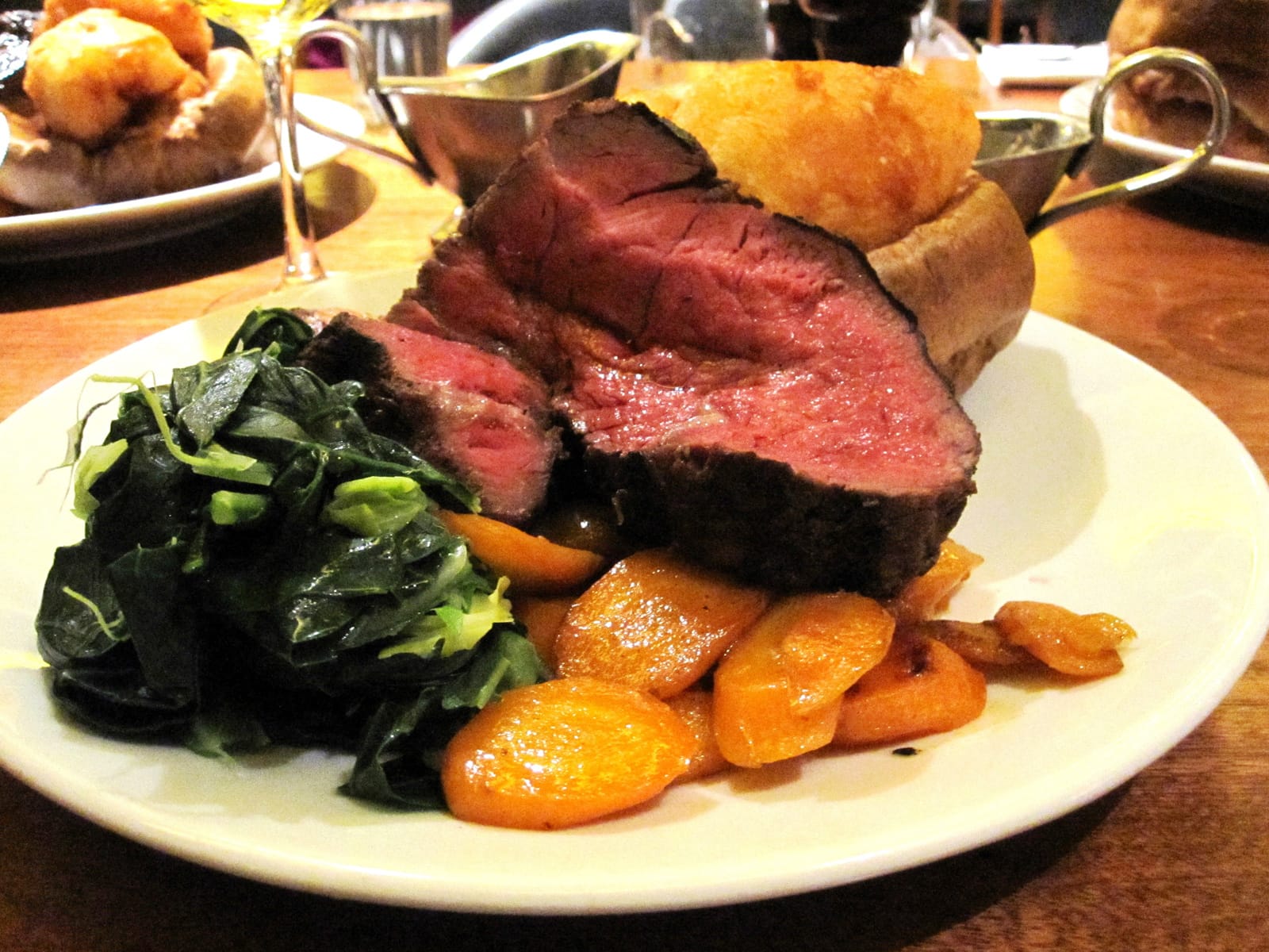 After that lunch anything seemed like it would be anti-climatic. But I stumbled into an actual British beef house, in an old basement, that was almost as wonderful. Again, just a few steps from our hotel was the Hawksmoor steak house, located in the mildly-restored basement of an old brewery. The owner of the brewery during the 1800s was famous for his once-a-year dinners serving big chunks of beef. And they've maintained the tradition. I didn't order the roast beef with Yorkshire pudding like I would have liked to, because the smallest piece was 2 1/2 pounds. But I had a great filet.