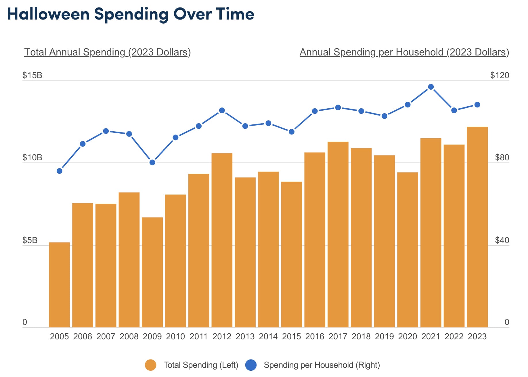 The National Retail Federation reports that a record-breaking 73% of Americans plan to partake in Halloween activities in 2023, up from 69% the previous year. This holiday is a significant economic force, with Americans projected to spend over $12 billion, a substantial increase over previous years when adjusted for inflation.
