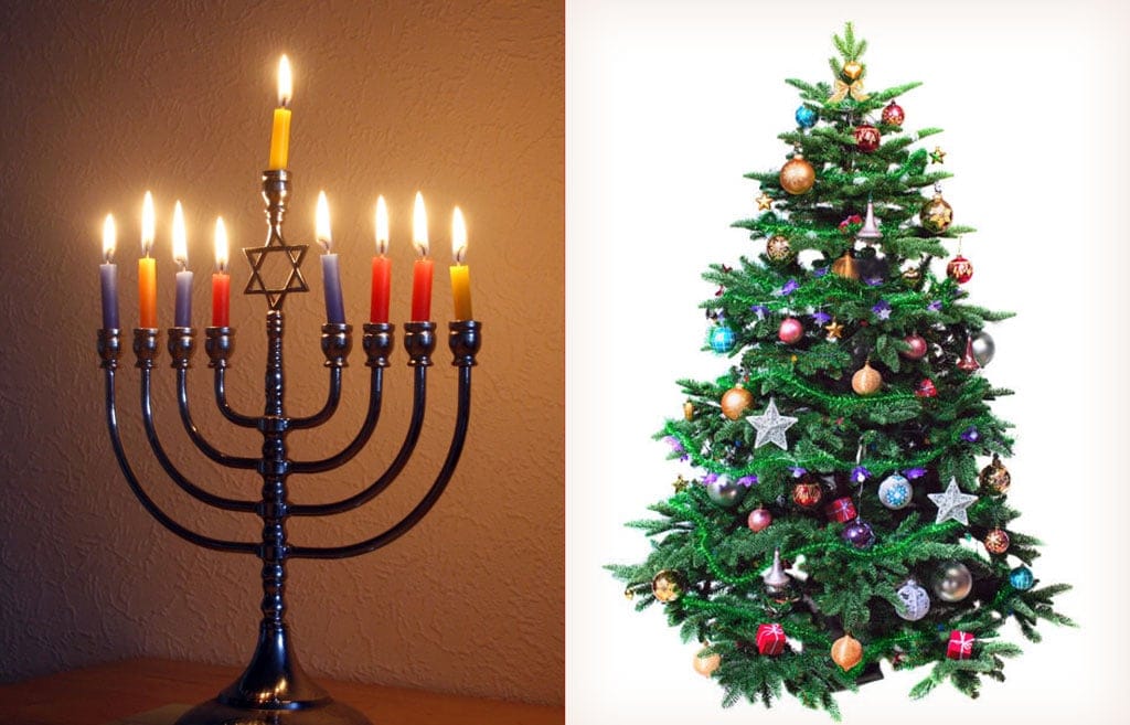 Christmas features: Santa and Mrs. Claus; the North Pole; flying reindeer including Rudolph with a red nose, pulling a sleigh in the sky; Christmas trees; mistletoe where it’s okay to sneak kisses; and heartwarming Christmas songs. (Many written by Jews!) Other than Adam Sandler’s classic “Hanukkah Song” and the rap “Hanukkah Homeboy” the standard is the “Dreidel Song”which goes, “I have a little dreidel I made it out of clay/And when it’s dry and ready/Then dreidel I shall play!” Cute, but definitely no match for Bing Crosby’s 1942 classic “White Christmas.”