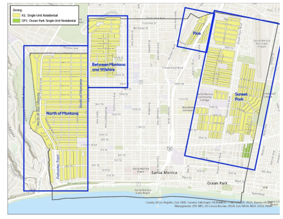 SB9, or the California Housing Opportunity and More Efficiency (HOME) Act, mandated cities permit an additional residential unit on parcels zoned for single-dwelling units. It allowed for a total of two residential units in such zones, excluding accessory dwelling units (ADUs). Enacted in September 2021, the law took effect statewide on January 1, 2022. Locally, SB9 applied solely to properties in the R1 (Single-Unit Residential) and OP1 (Ocean Park Single-Unit Residential) Zones. Certain exemptions prevented displacement of current residents, including properties within hazard zones, historic districts, containing price-controlled units, subject to recent Ellis Act removal, or necessitating the removal of over 25% of existing structure walls.