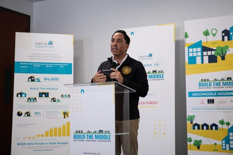 On a Saturday morning in early November, Mayor Gloria dropped by a conference center in San Diego’s master-planned Liberty Station neighborhood to meet up with the builders, housing financiers, politicians and academics gathered at the Casita Coalition’s annual convention.