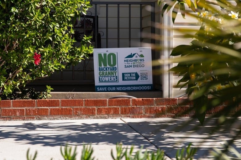 Meanwhile, local critics of the program have already begun to mobilize. Signs inveighing against “granny towers” and “backyard apartments” are common lawn ornaments in many of the city’s residential neighborhoods. The local backlash has already spilled over to other areas of local housing policy and now threatens Mayor Todd Gloria’s broader “Yes In My Backyard” vision.