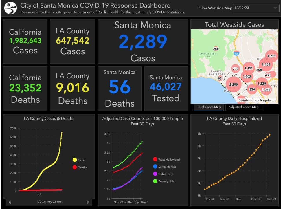 “The winter holidays invite us to spread joy and light to those around us. Perhaps as we weigh the request to delay travel plans and gather only with members of our own household we can find comfort in making these sacrifices, because we know that by staying home we’re giving others the ultimate holiday gift; we may be saving their lives,” said L.A. County Public Health Director Barbara Ferrer in a Dec. 23 public briefing.