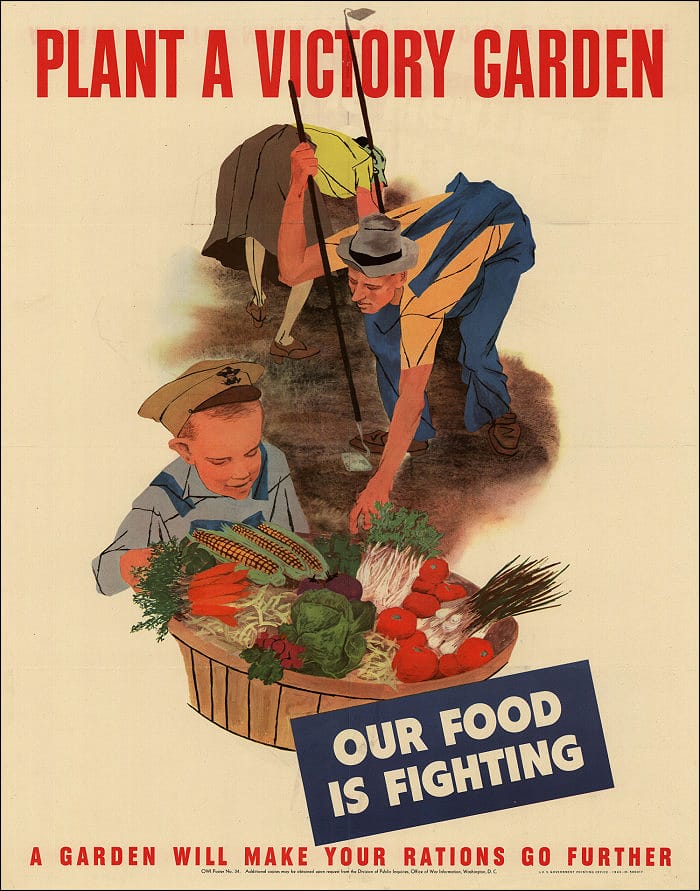 Tin was hard to come by, canned foods were disappearing from shelves and fresh produce was scarce because there were soldiers and a war effort to feed. Food rationing had begun, and the call went out to start "Victory Gardens" in the name of patriotism. Nearly 20 million Americans responded to the challenge: Victory Gardens were estimated to grow up to 40 percent of all the vegetable produce being consumed nationally at the time.