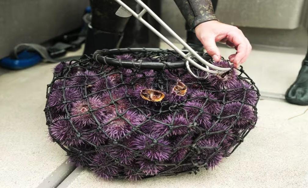 In Goleta, just east of Santa Barbara, Falk directed the team of urchin divers who worked alongside actress Shailene Woodley on the endeavor. The overgrowth of purple urchins on the coastline has negative impacts on the ocean’s predators, and also contributes to the destruction of kelp forests that are instrumental in biodiversity. The divers pulled up baskets of the urchins and put them in water tanks, sending them to a farm where they can become sellable materials, making economic and environmental gains alike.