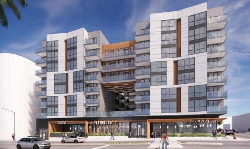 Another Cypress applicant, DLR Group-designed project submitted to ARB was temporarily struck down by the board during its April 29 meeting, that being a proposed eight-story mixed-use apartment complex at 2025 Wilshire Blvd. The project, first presented to ARB in September 2022 as a four-story project, called for the clearing of the commercial buildings currently occupied by Chipotle and Veggie Grill in order to move forward with construction.