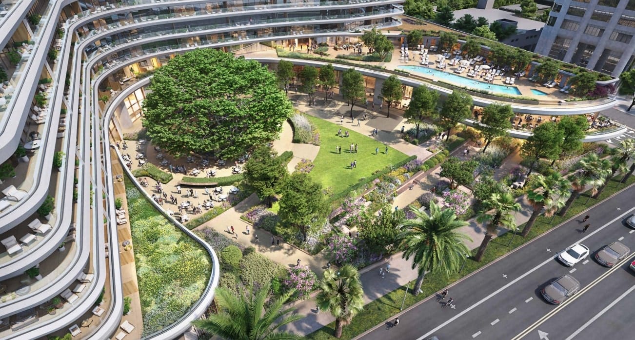 "The site design is really anchored by the historic Moreton Bay Fig Tree … one of the primary guiding principles was to open up the hotel parcel, most of the surrounding streets and also to pedestrians," said Principal and Vice President of developer The Athens Group Dustin Peterson.