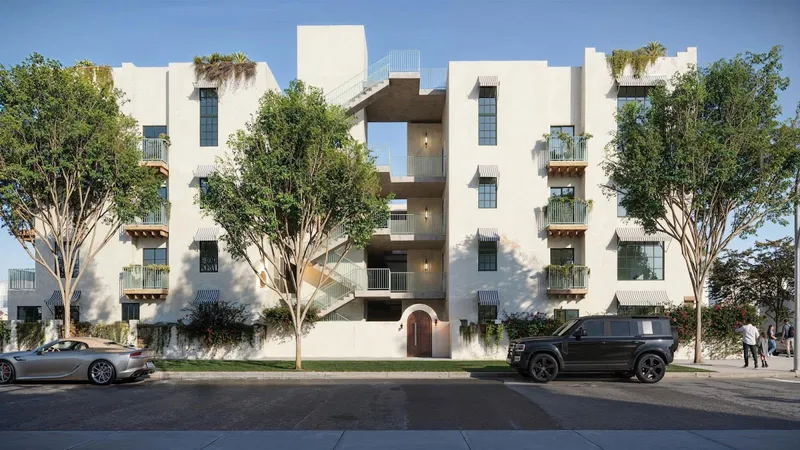 Design plans submitted with the application feature a white, textured facade and metal balconies on units facing outward. The project was designed by Bica Architects, a firm also responsible for other recent developments in and around the neighboring area.