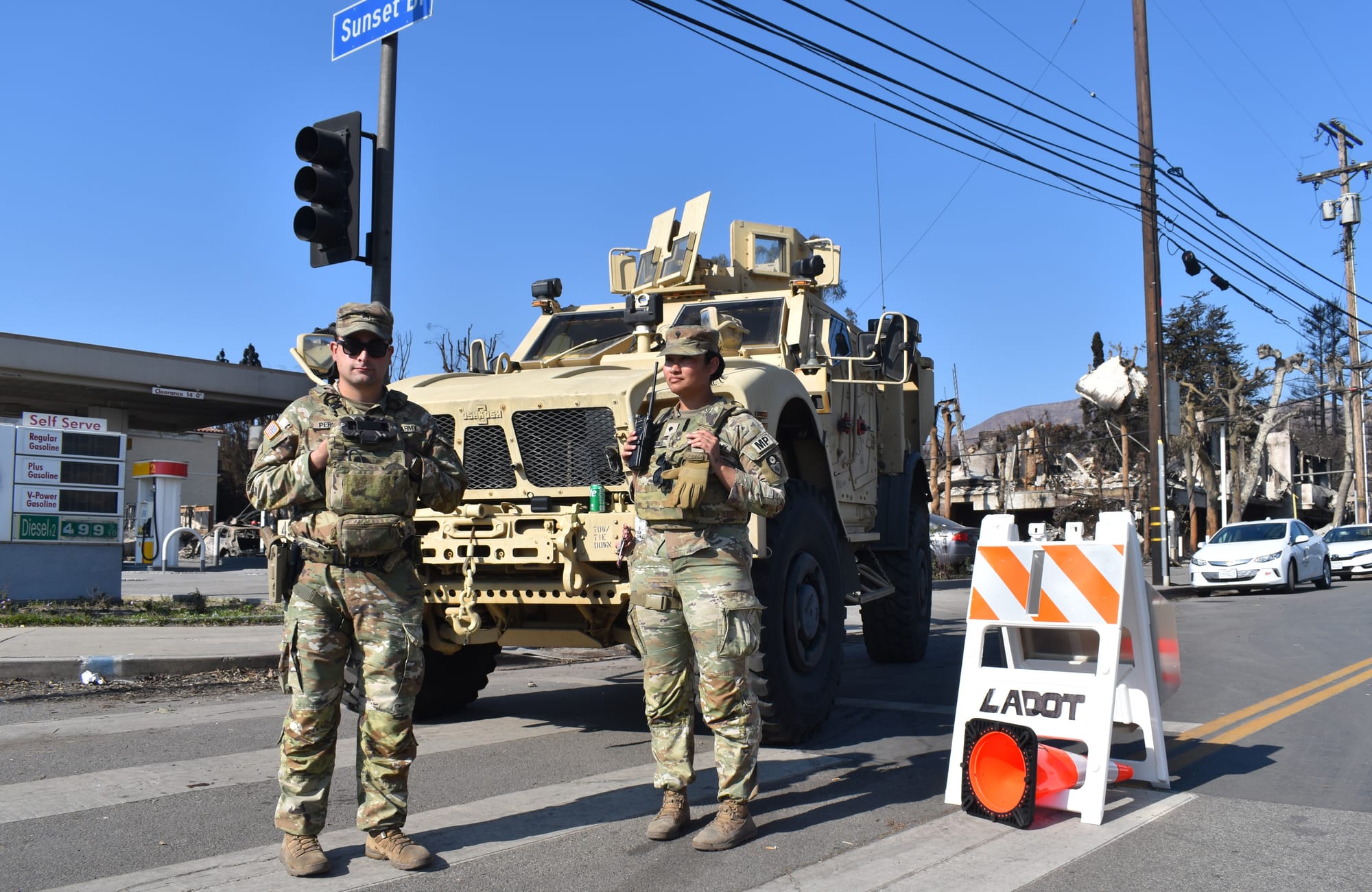 The National Guard might not be visible from Ocean Ave any more, but its presence remains very much in force in the manner of lots of no-nonsense check points every couple of miles or so along Route 1. And joining them in their ongoing efforts to maintain law and order in the fire evacuation zone, are officers from the Los Angeles Police Department.